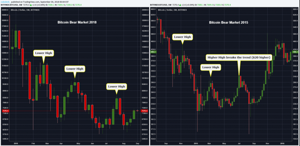 Ele também observa que, durante este ano, o preço do Bitcoin formou, em muitos aspectos, padrões similares àqueles observados em 2015:
