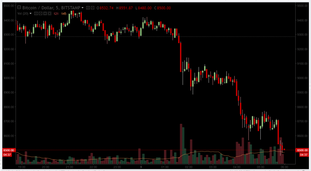 A terceira onda ocorreu por volta das 4:00 UTC – desta vez, para a marca de US$8,5 mil. Assim, em menos de 48 horas, o Bitcoin caiu em preço em mais de US$2 mil.