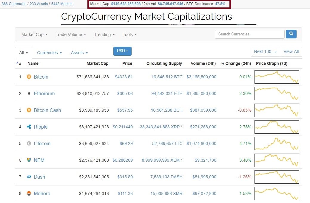 Diante de tudo isso, a capitalização agregada de todas as criptomoedas a atingir o patamar de US$ 137,1 bilhões, dos quais 48,7% representavam o Bitcoin.