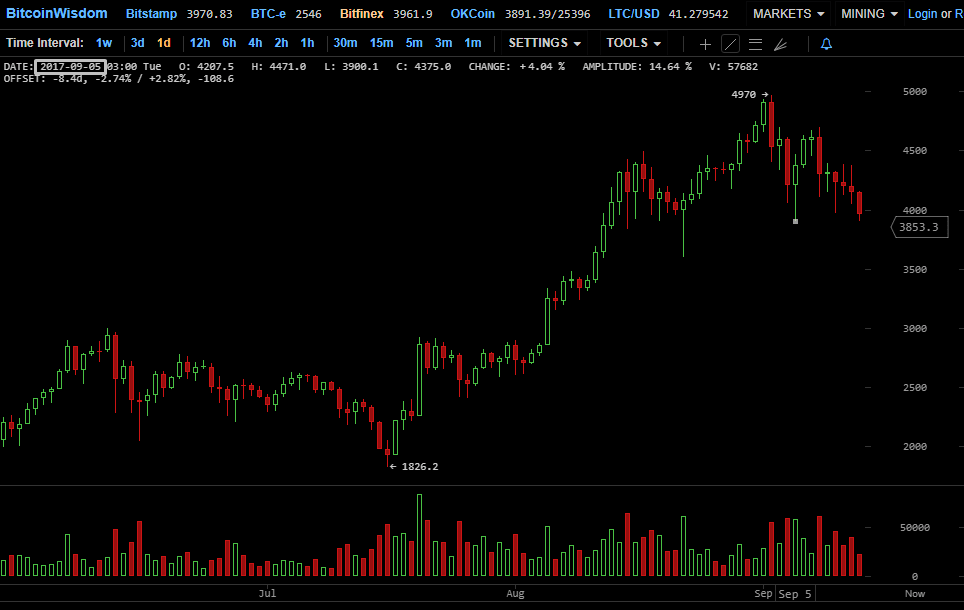 No contexto de um aperto significativo da regulamentação e crescente incerteza na China, o preço da Primeira moeda digital caiu para a marca de uma semana atrás. No momento, o Bitcoin está sendo negociado abaixo de US$ 4.000 e o preço continua a descer.