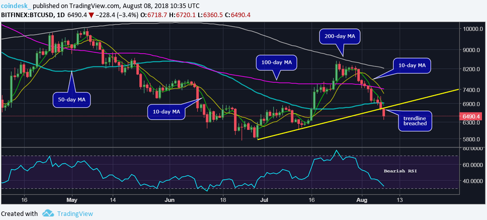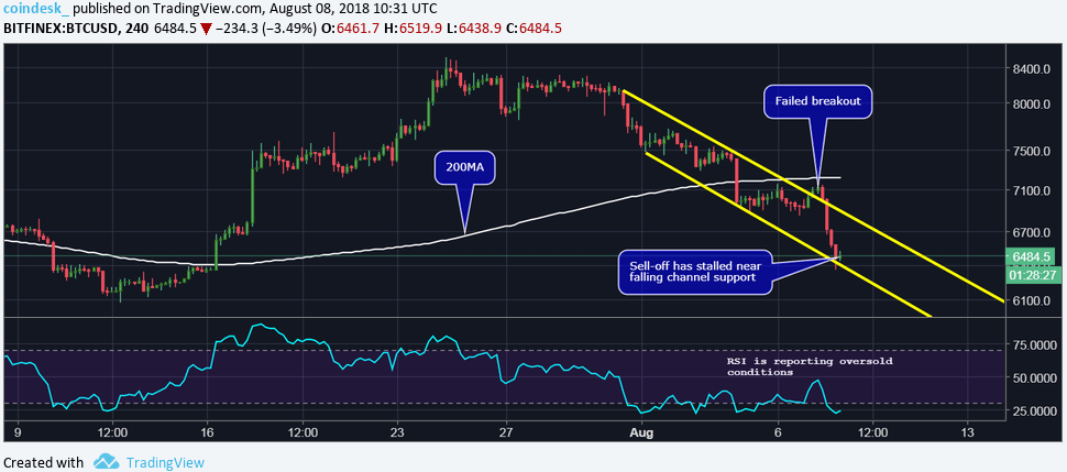 Hoje, 8 de agosto, o “ouro digital” alcançou a marca mais baixa na região: US$6,36 mil na Bitfinex. Atualmente, o Bitcoin está sendo negociado nos níveis de três semanas atrás (cerca de US$6,5 mil).