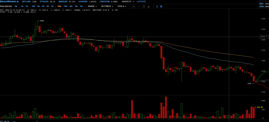 No dia 14 de dezembro, o preço do Bitcoin caiu abaixo de US$3,2 mil.