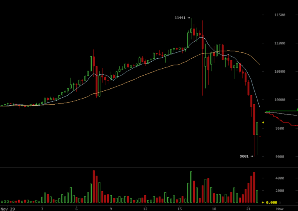 Enquanto isso, o preço do Bitcoin – que mais cedo superou a marca de US$11,1 mil – retornou ao preço de US$9 mil em uma série de corretoras.