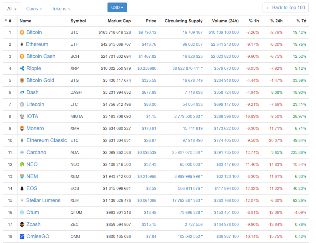 A taxa média ponderada, de acordo com os dados da Coinmarketcap, no entanto, no momento da redação, era de cerca de US$9.798, o que representa uma perda de preço de 2,76% nas últimas 24 horas.