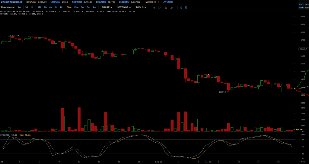 Gráfico de 30 minutos da Bitfinex para o par BTC/USD