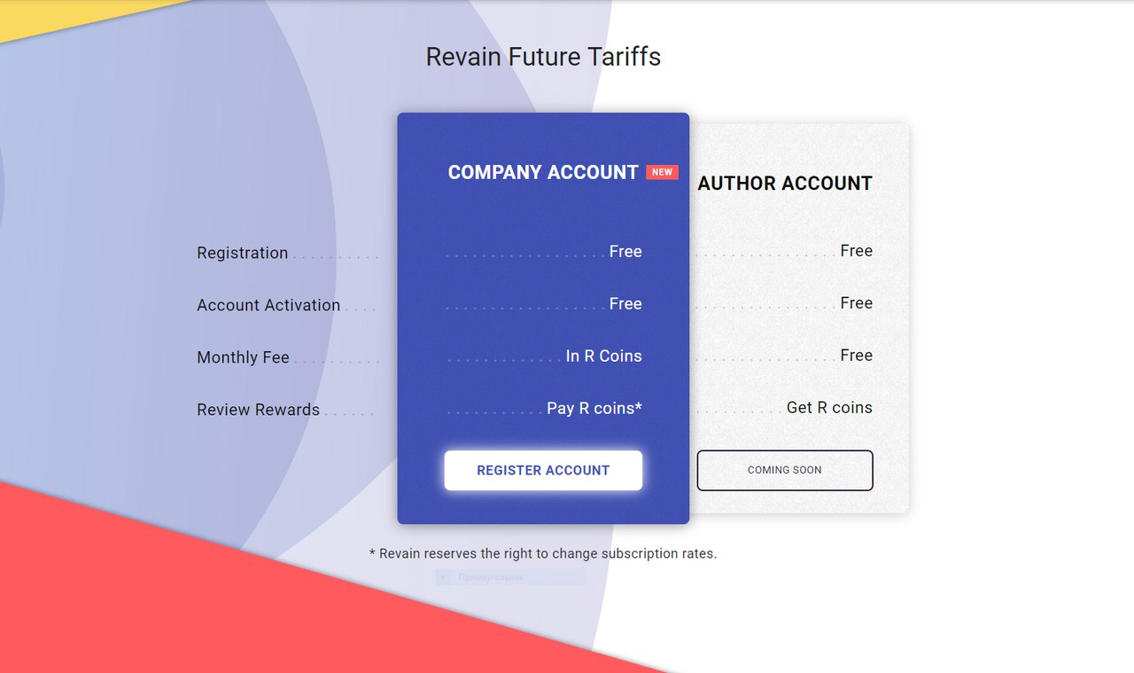 Em segundo lugar, a página de preços. A Revain está tentando encontrar o equilíbrio certo entre servir os usuários e monetizar o produto com a nova oferta de inscrição, o que permite que os projetos interajam com os usuários em suas críticas através de replies. A página de preços é a nova seção do Dashboard com a informação a respeito das inscrições. A Revain ainda não está anunciando preços, mas todos podem testar todas as funcionalidades que vêm junto com a inscrição à versão beta de Revain – que é completamente gratuita. Projetos podem testar como suas páginas se parecerão após o lançamento das contas de projetos, enquanto usuários podem criar sua própria companhia virtual e testar as mesmas funções.