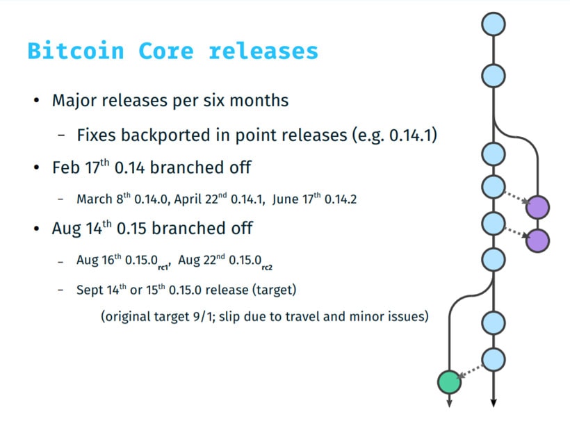 O lançamento da nova versão do cliente oficial era esperado para o dia 1.º de setembro, mas essa data foi adiada para 14 ou 15 de setembro. Conforme observado por Maxwell, esse atraso de duas semanas está associado a uma alta atividade por parte dos desenvolvedores, além de que nem todos eles têm acesso às chaves criptográficas necessárias.