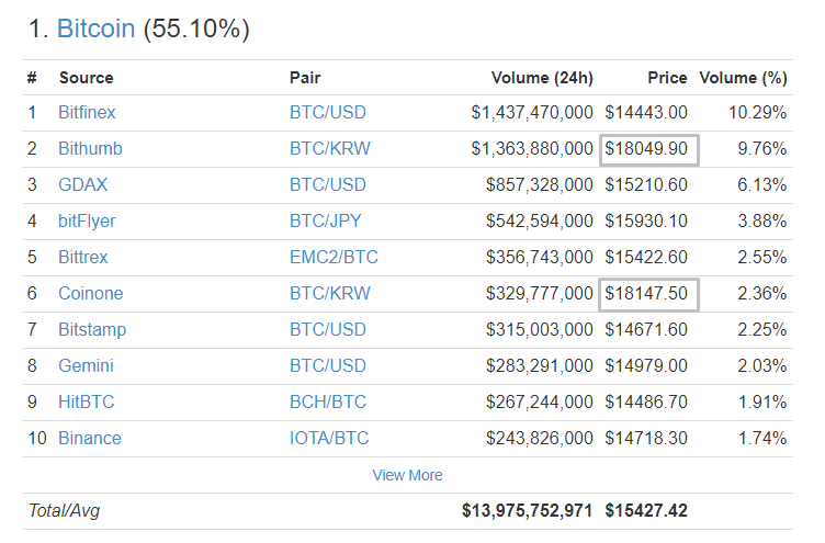 Vale ressaltar que nas maiores corretoras sul-coreanas de criptomoedas, o preço do Bitcoin já superou o limiar de US$18 mil.