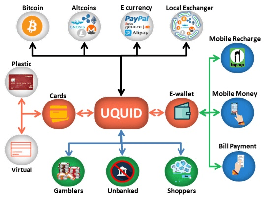 UQUID é uma solução completa para criptomoedas, que desejam usar suas moedas dentro de um ambiente de consumo tradicional. A oferta de serviços da UQUID inclui soluções de cartão de débito, soluções de dinheiro móvel, soluções de jogo, e-wallet e processador de pagamento.