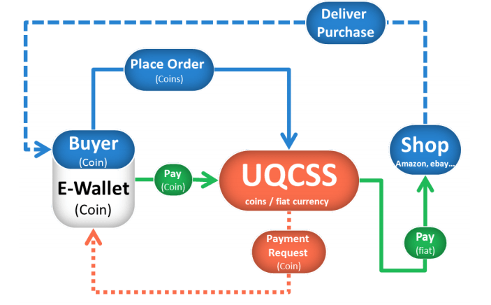 Esse recurso será incorporado ao sistema principal e alimentará os ativos para confirmar pagamentos on-line diretamente da carteira eletrônica. A UQSS permitirá que seus usuários paguem diretamente com suas moedas preferidas ao comprar on-line em lojas como Amazon, eBay e outras que envolvam comércio eletrônico.