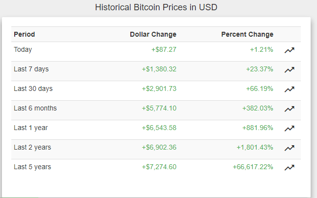 De acordo com o serviço analítico CoinDance, durante a última semana, o Bitcoin cresceu quase 25%; nos últimos seis meses, cresceu cerca de 400%; e nos últimos 12 meses, o preço em torno de 881%.