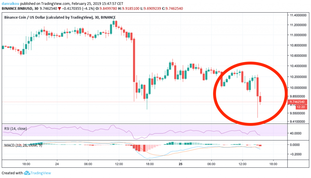 Logo na sequência da venda, o valor da Binance Coin reduziu em mais de 6% de uma vez enquanto aqueles que não conseguiram entrar na venda e comprar FETs simplesmente atiravam BNB no mercado.