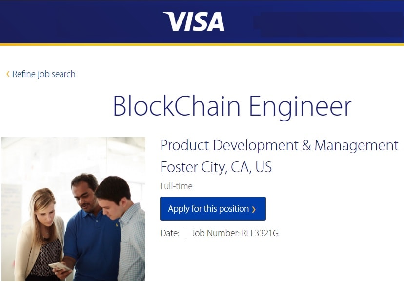 A Visa, principal sistema de pagamento, busca ativamente especialistas em campo de tecnologia de blockchain prontos para participar de sua equipe de desenvolvimento. A oferta da vaga foi publicada no site oficial da empresa.