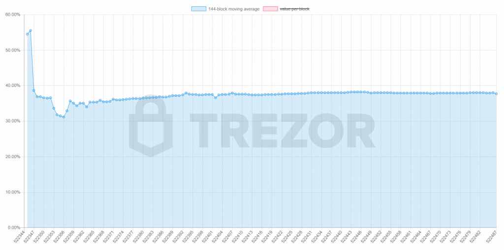 O desenvolvedor da BitGo, Murch, chamou atenção para o fato de que um pouco mais cedo, no bloco 519.667, foi observado um valor próximo a 95,65%.