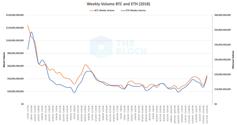 Entre os dias 17 e 23 de dezembro, os volumes semanais do Bitcoin (BTC) foram de US$46 bilhões, enquanto que para o Ethereum (ETH), o este indicador foi de US$18,5 bilhões. Valores mais altos foram registrados pela última vez em maio, ou seja, há sete meses. Isso foi relatado pelo The Block.