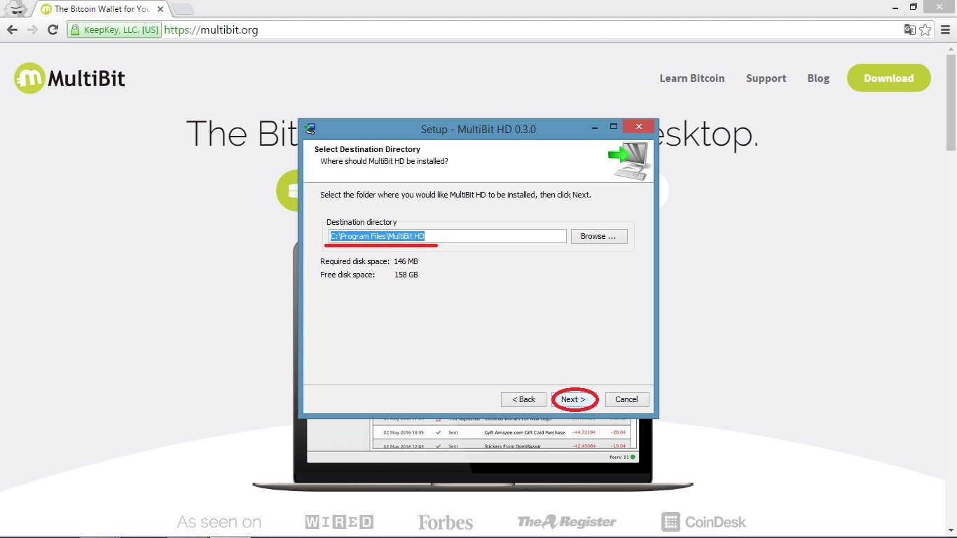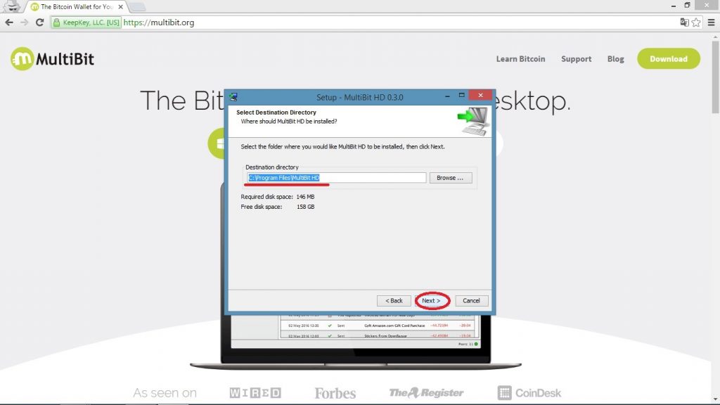 Em seguida escolha a pasta onde você gostaria que sua carteira fosse instalada. Caso não tenha nenhuma preferência em especial, é só prosseguir clicando em “Next”.